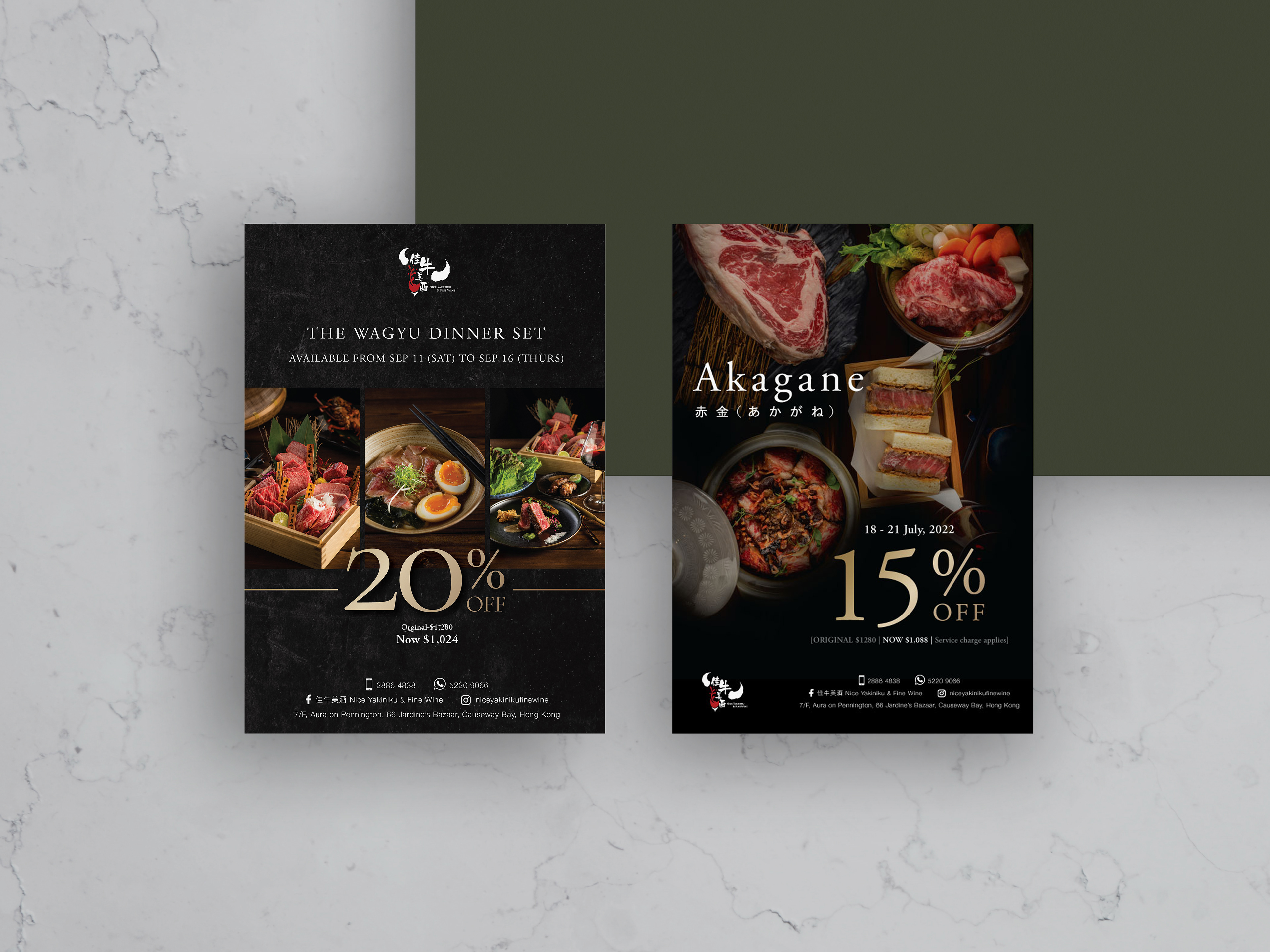 NICE Yakiniku is a Japanese restaurant located in Hong Kong. As a freelance graphic designer of NICE, I undertook a redesign of all their branding and marketing materials, incorporating the existing logo while giving the brand a refreshed look and feel, also retargeting younger group of audiences in Hong Kong. I also work along with the marketing manager to create artwork for marketing purposes.